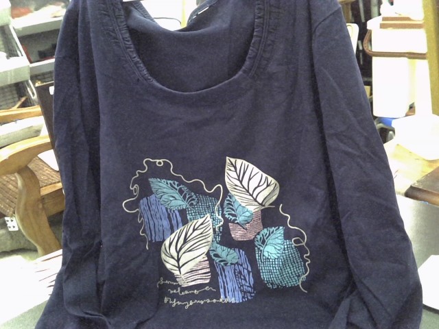 深藍色葉子7分袖上衣